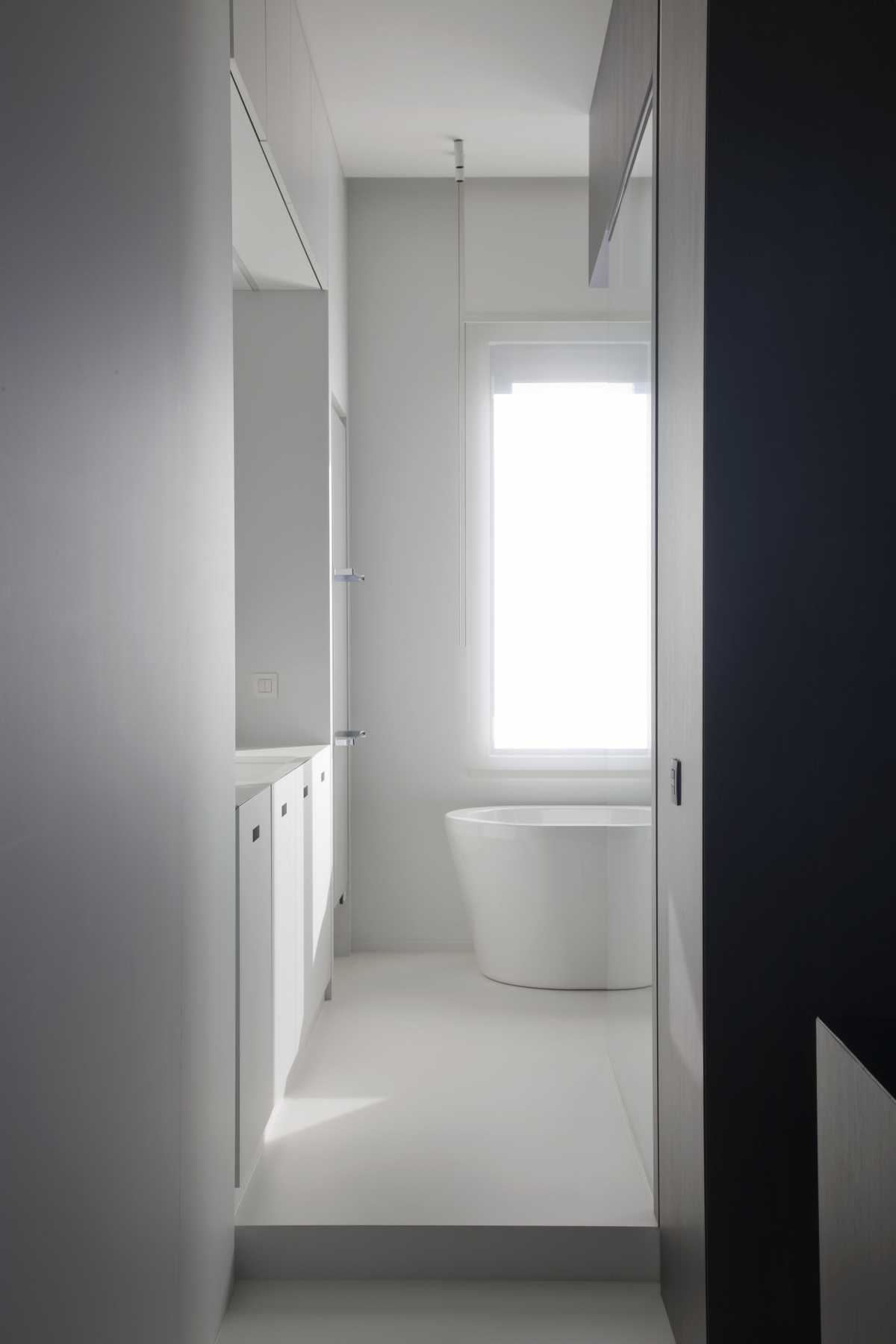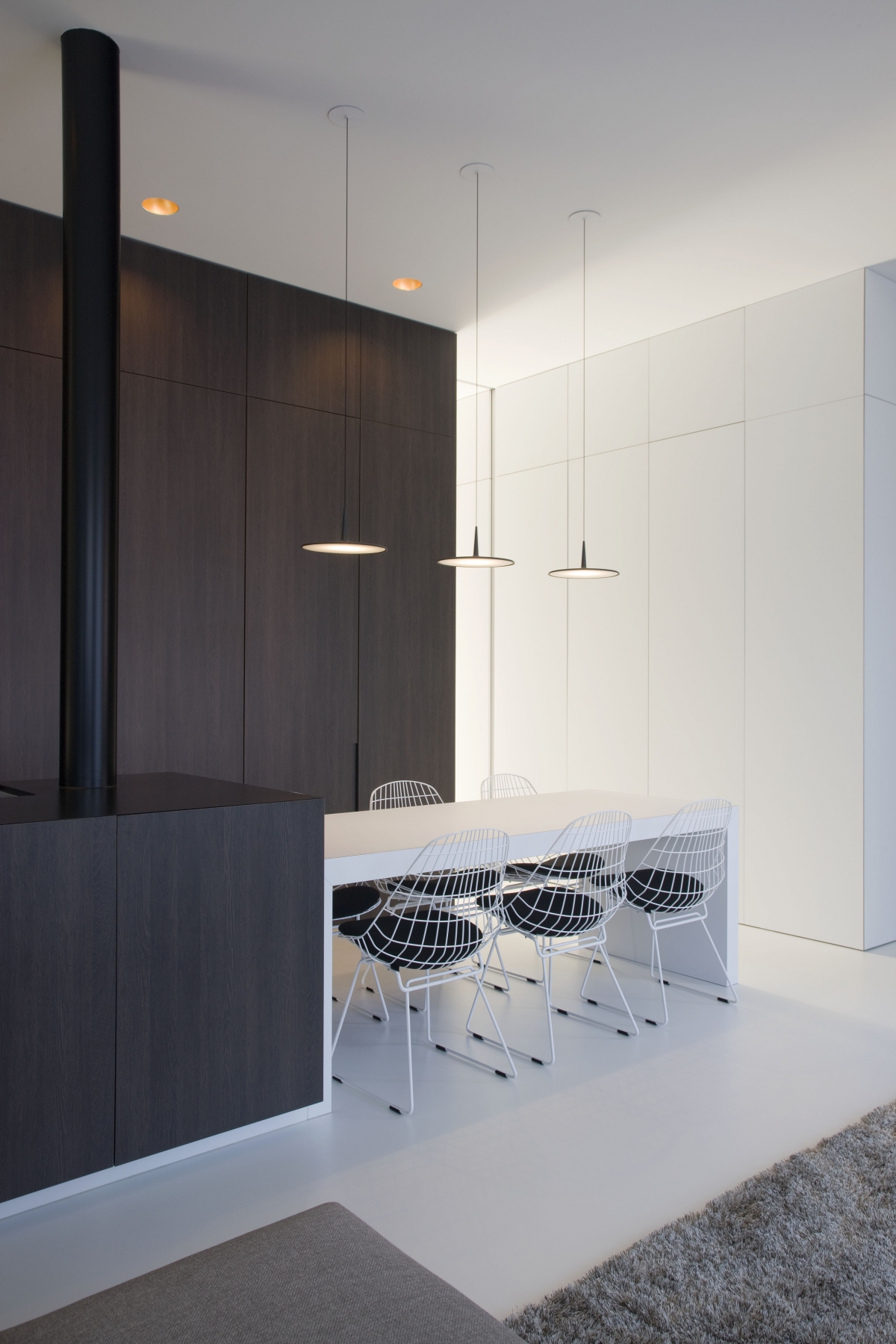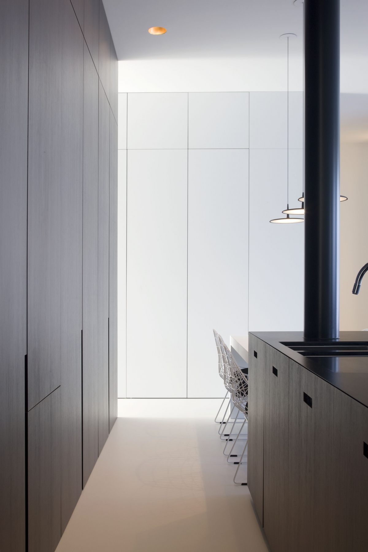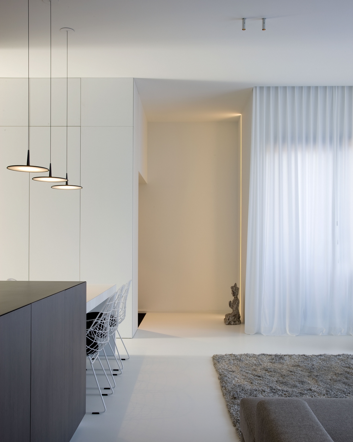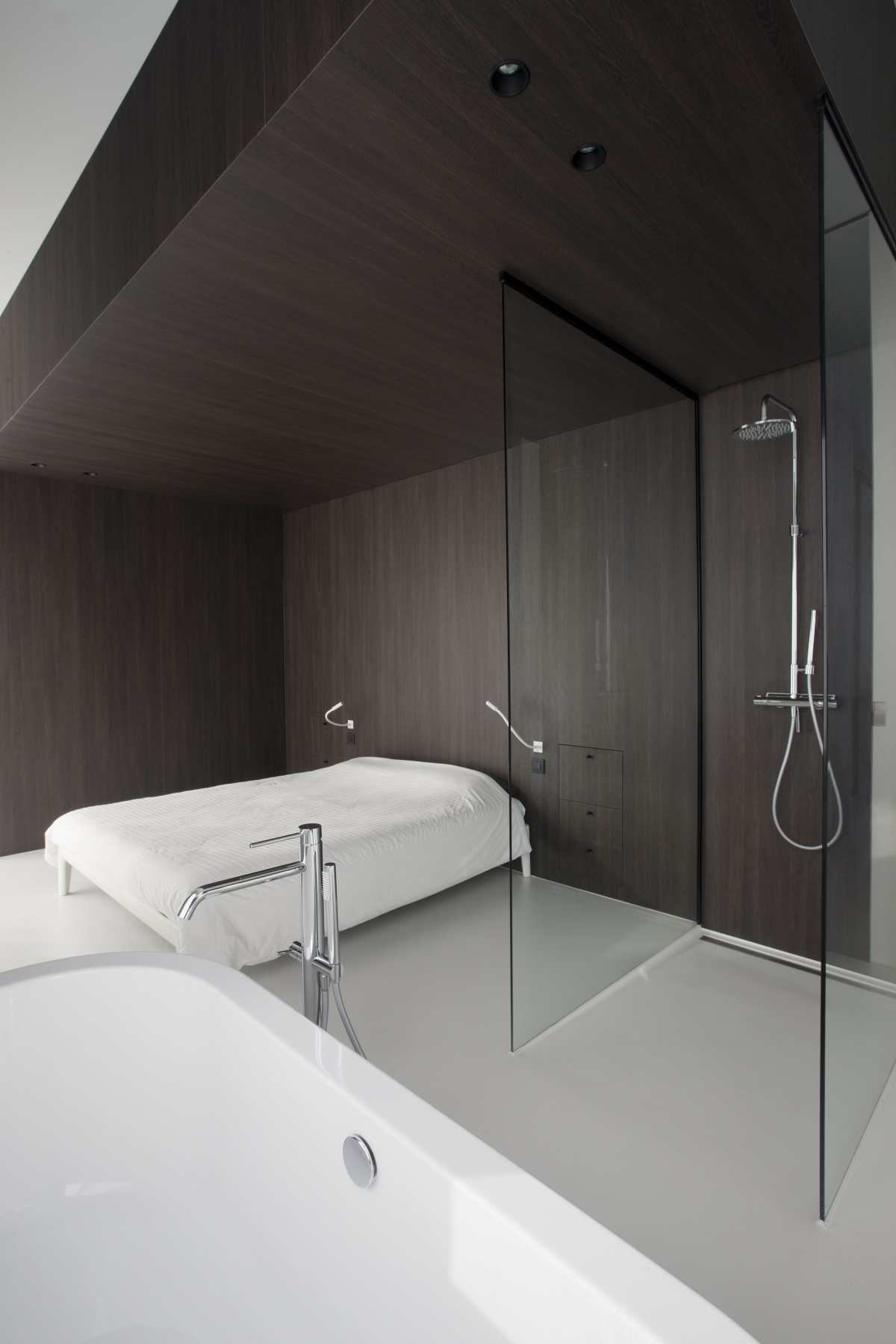 Renovation of a small loft. By centrally positioning all essential functions, an open living area is created respecting the privacy of the residents.