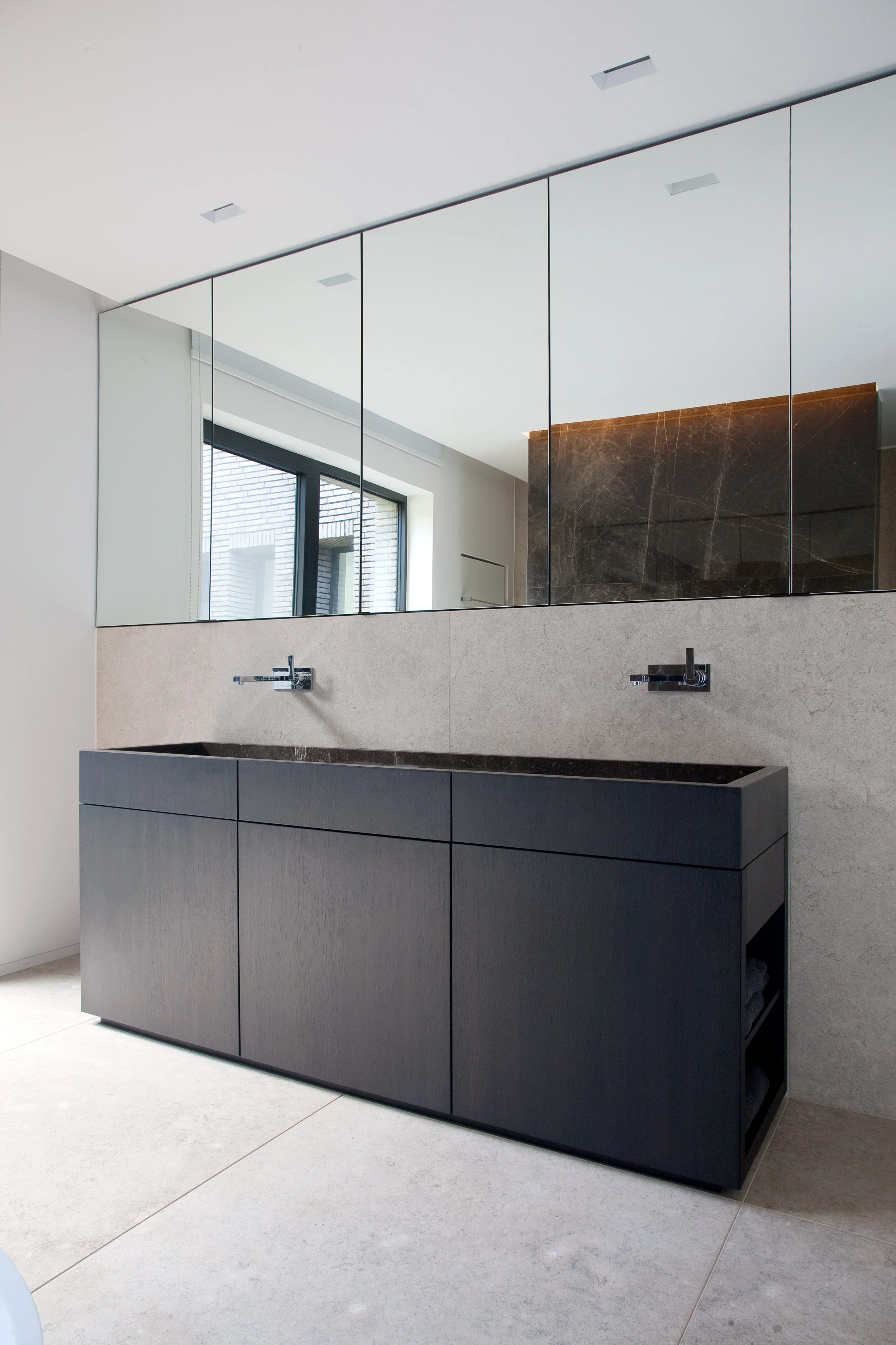 In deze nieuwbouwvilla lopen de ruimtes naadloos in elkaar over wat resulteert in een harmonieuse dialectiek tussen verschillende woonfuncties. i.s.m. Wouter Bastijns.