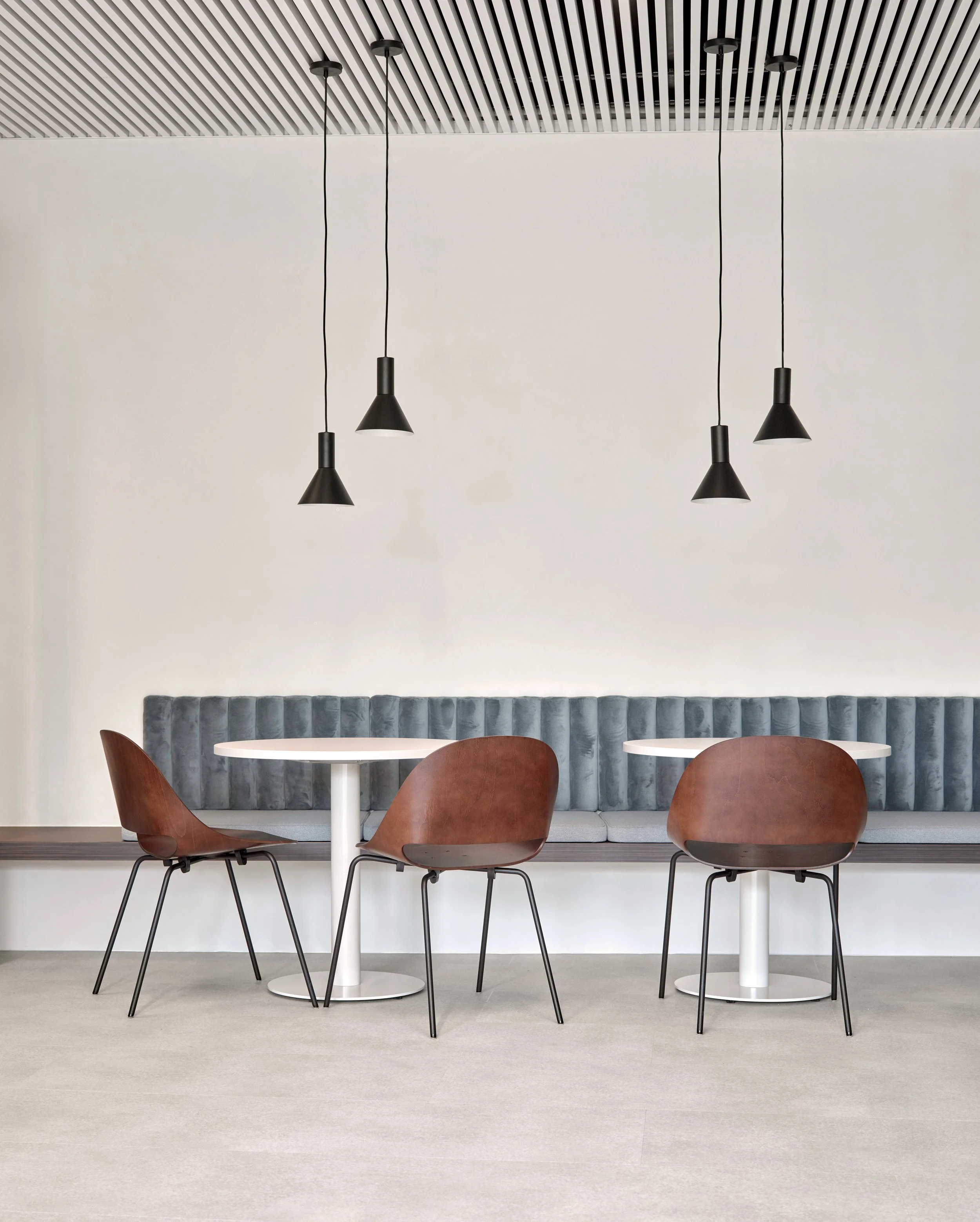 Dit kantoor in het Onyx Building in Antwerpen combineert een warme en functionele inrichting met open werkplekken, focusruimtes en een flexibel inzetbare lunch- en presentatieruimte. Een meanderende circulatieroute brengt rust en dynamiek, terwijl natuurlijke materialen, zachte kleuren en groene accenten zorgen voor een rustgevende, professionele en inspirerende werkomgeving.